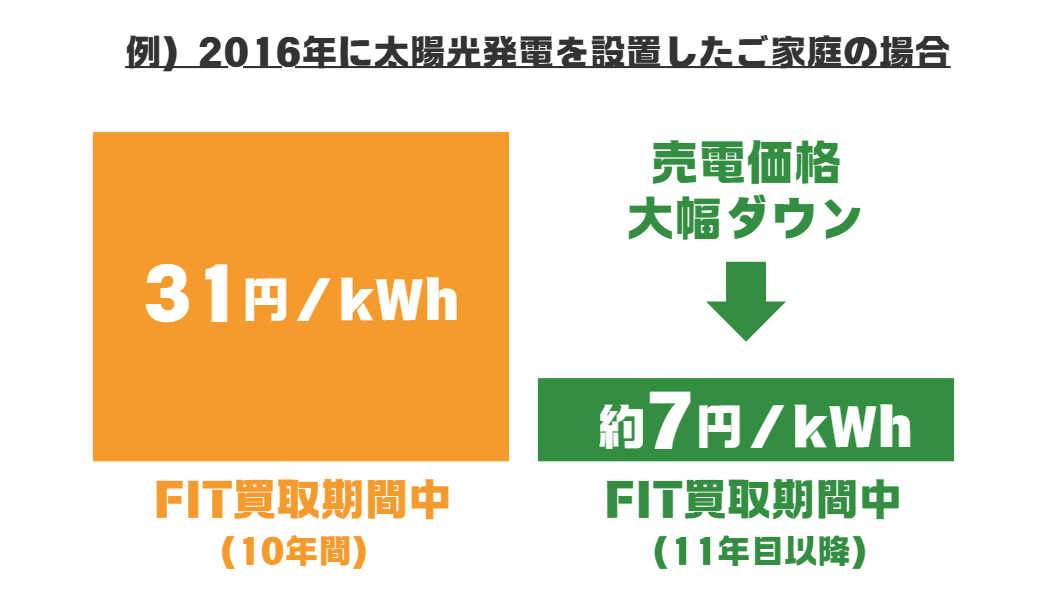 FITが終了すると、売電価格は約7円/kWhと大幅に値下がります。