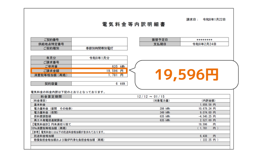 2026年1月 四国電力 電気料金明細が下記の通り。