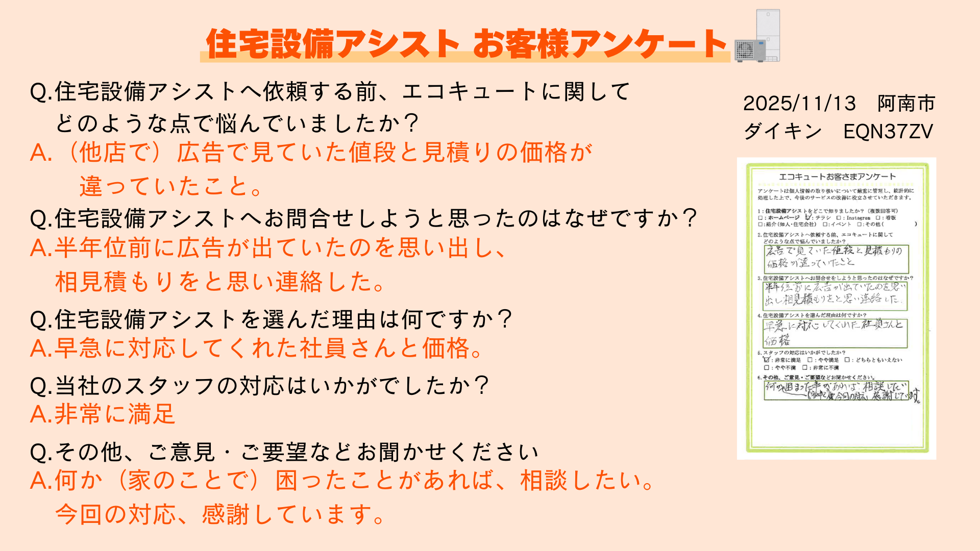お客様からいただいた貴重な声を