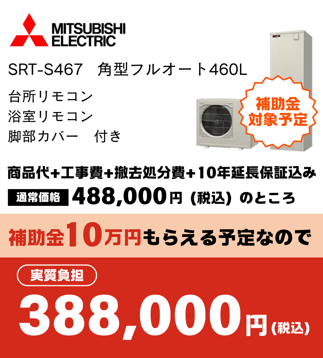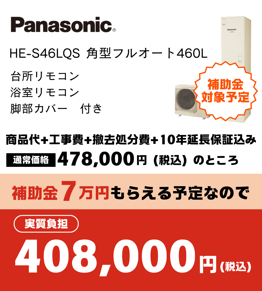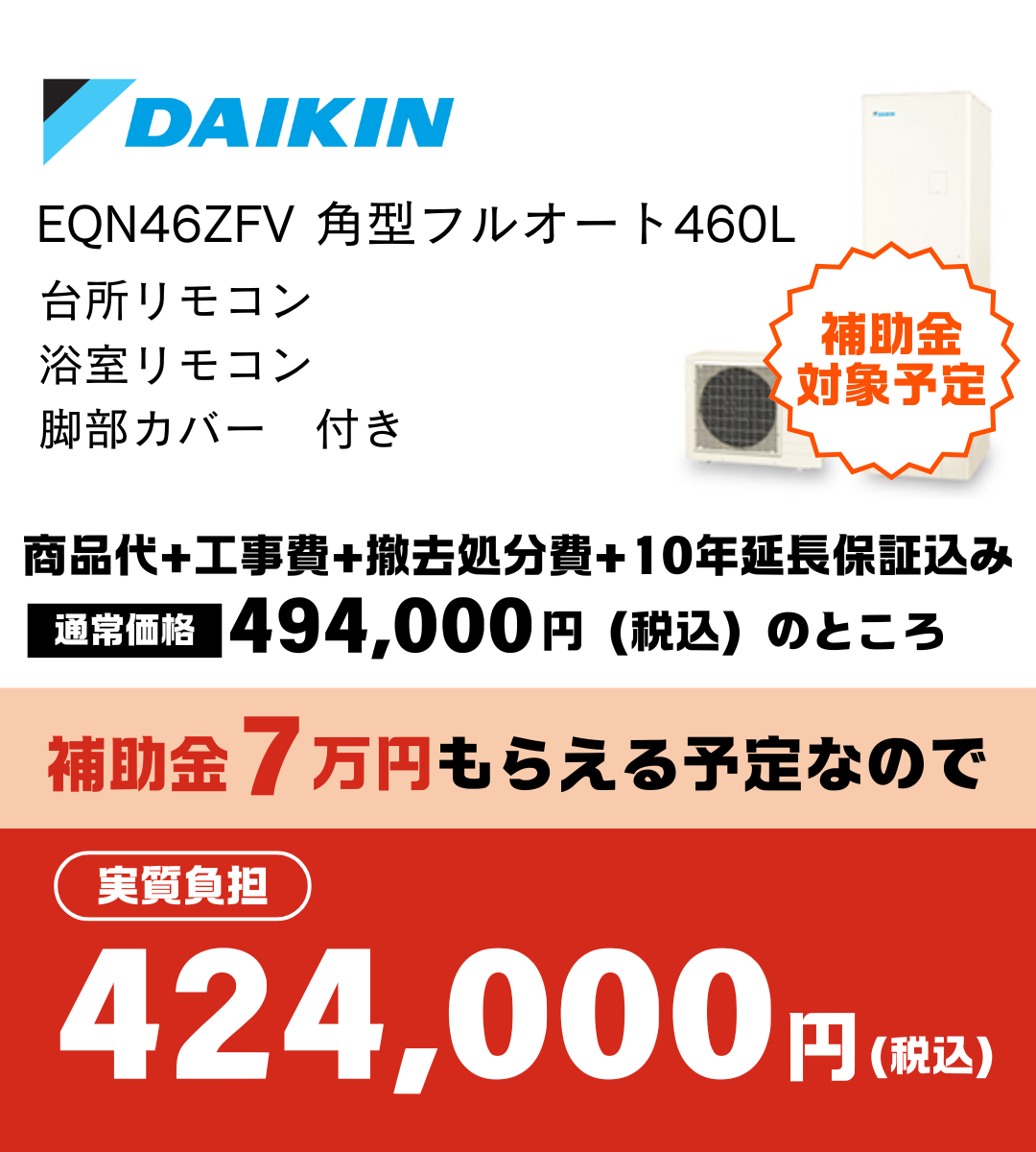 ※上記はエコキュート(フルオート)からの取り換えの場合の金額です。